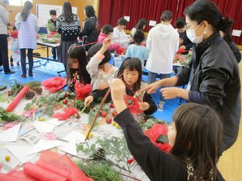 日本フラワーデザイナー協会愛知県支部の皆さんのご協力で、クリスマス飾り教室を開催していただきました。